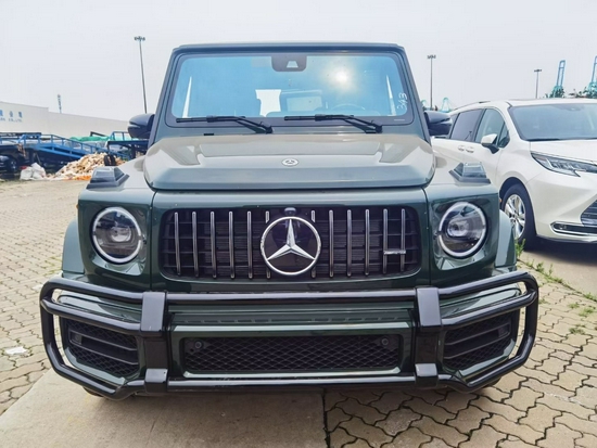 21款奔驰G63它硬朗的方盒子造型,没有多余的弧度、没有任何曲线,眼光所及满是平直锋利的线条,就连车顶上的导雨沟槽,也是沿着车顶周围一圈,分外焊接上去的金属槽,车门搭钮更是绝不虚心,硬挺挺地屹立在门缝之外,外凸的轮拱、造型如同 梯形的引擎盖。