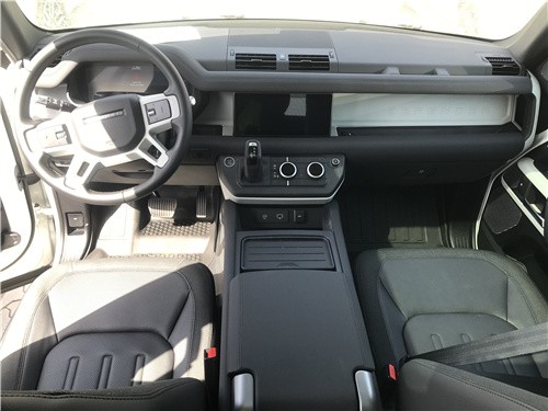 21款路虎卫士的内饰设计变得不再简陋,中控台使用了涂层镁合金材质,进一步提升了内饰的耐用性,新车使用了全新的四辐式方向盘、12.3英寸全液晶仪表、10英寸中控屏幕,空调旋钮带有液晶显示屏,电子挡把位于中控屏下方,使用更加顺手。