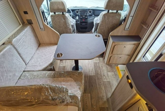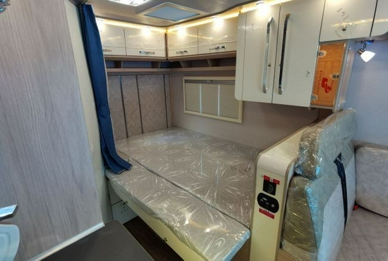 这款房车属于T型房车,具有 轻量化车身、L型沙发+可延伸后纵置床,干湿分离卫生间、电动升降床 等优点。小额头设计使整体造型更加灵巧灵动,其不足3米的车身高度,也让旅途更加畅通。该车虽然是无拓展车型,但它的内部设计堪称“空间魔术师”,适合一家出游,国六排放标准,蓝牌C本即可上路。