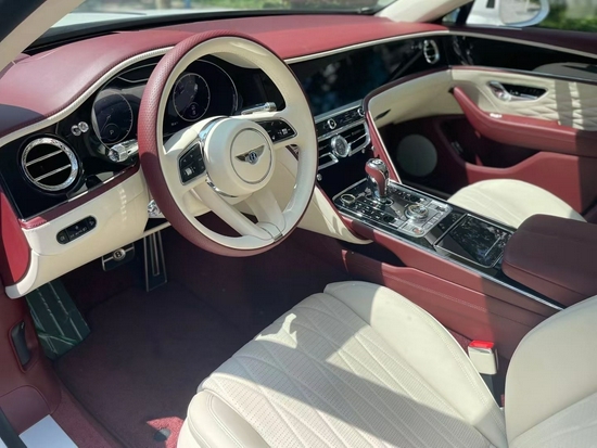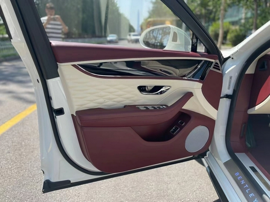 飞驰的外观方面,稀有的板球红车身颜色,非常的漂亮时尚,象征着旗舰地位的飞翼式B字形立标,可以伸缩,充满了仪式感,竖条式的中网,彰显出强大的气场,水晶切割工艺的LED大灯分布在两侧,仿佛钻石一般发出了璀璨夺目的光芒。整体车身线条更具美感,22寸轮毂的配备,看起来更加运动大气。