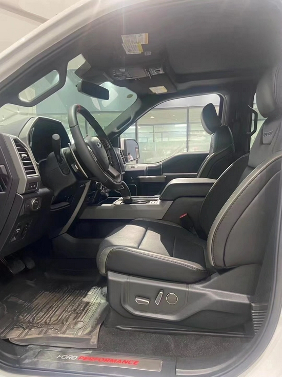 2021款全新福特猛禽F150Raptor皮卡中控台部分辅以银色饰板装饰六指针仪表盘的设计有些后工业时代的复古风格。采用带电冷热功能的可记忆式皮革座椅,头枕四向可调,搭配铝饰条和黑色钢琴烤漆内饰。可电动升降的后窗带隔板和电热除霜功能。进口福特猛禽F150皮卡真皮座椅包裹性很强。