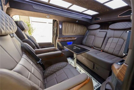 奔驰V250改装商务车全车新款电动精美布艺窗帘、控制车内电器的触摸屏操作,无不体现至尊豪华的商务形象,在与驾驶室全隔屏下,设置了多功能组合柜吧台,闲暇时与家人朋友来杯咖啡或是红酒,品味慢酌细语间的浪漫情怀。7座,家居、商用适合不过、Nespresso咖啡机,对车主的冷暖饮食需求关怀备至。