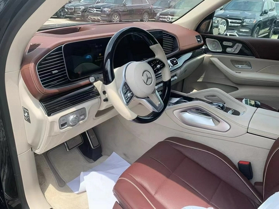 内饰方面,梅赛德斯-迈巴赫全新GLS 600同样采用双色设计,配备了全新造型的三辐式多功能方向盘,并搭载悬浮式液晶数字仪表以及多媒体中控屏幕。新车内饰还采用了Nappa皮革包裹,后排配有两个独立可调座椅,同时标配了座椅通风加热、按摩等功能,另外,还为后排乘客提供小桌板和多媒体娱乐系统,与普通版GLS车型相比,整体豪华感大幅提升