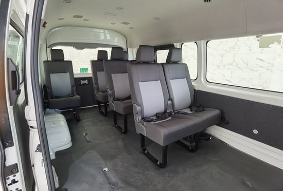 车内空间利用非常充分,配有上下两张双人床铺,通过搭建驾驶室上方的床板可以形成一张床铺,通过折叠沙发座椅,铺上软垫又形成另外一张双人床铺,驻车时车内可供四人同时休息。丰田海狮大多数是作为接待用车,因此海狮受到很多企业的青睐。既然是企业接待专用车,内饰方面是不能过于简陋,接待车的内饰是展现了企业的体面。