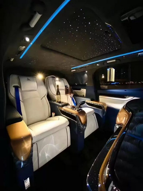 全新的隔断吧台设计, 220v电源接口、USB多功能连接口、一键式超静音超清液晶电动升降电视、 LED可变色氛围灯、德国原装进口内置集成调光器阅读灯、 智能隐藏式现代化奢华酒柜、 日本阿尔派ALPINE影音系统 JBL扬声器、 后舱左右两侧雾化玻璃、 手机无线充电、 USB 220 电源接口、 led星光顶灯配流星、 全车无线Wi-Fi。