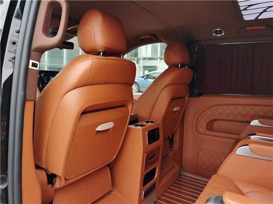 整台车采用了前后无隔断的设计,隐私性稍差空间性更好,便于商务接待的同时兼顾家用, 定制风格采用经典的迈巴赫元素,宽大的航空椅配上迈巴赫舒适头枕,坐在上面就想美美睡上一觉。