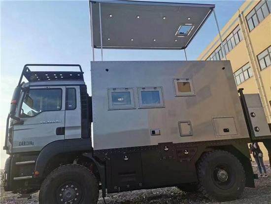 箱体采用六明治箱体复合材料,其开发的初衷为高安全性和高保温性,大量高科技材料的应用使6CM厚的箱体达到了红砖24墙的保温效果。高强度铝合金骨架经过热断桥处理,附重部分采用铝包木结构,使箱体工艺具有安全系数高,隔音隔热一流的特点,且在整车发生翻滚时起到保护坐乘人员的作用。汕斯特越野房车车窗采用诺马迪森专属车窗,配英国品牌遮阳帘和防蚊网。尾部18500T-MAX 24伏电动绞盘,备胎电动挂在系统,加挂两个外部储物盒。