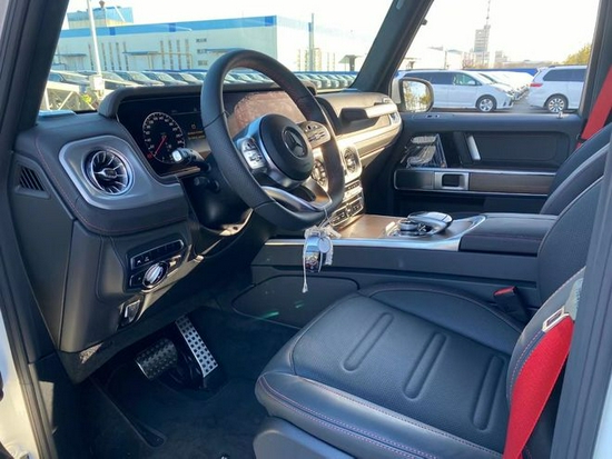 2021款奔驰G63汽油G级硬轴计划恍如为它的前后半轴穿上了坚固的铠甲,也比如是一些生物“外骨骼”构造 配置:天窗 宽屏 20轮 菱形格座椅 通风按摩 隐私玻璃色氛围灯 柏林之声 多束灯 100L大油箱AMG包 停车包 环影 暗夜包 后娱预留 全新一代G级最大的变化全部集中在内饰方面,家族化的设计语言随处可见,双12.3英寸屏幕非常震撼让原本复杂的内饰简约了不少。