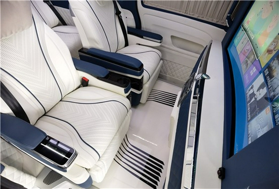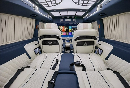 2021新款奔驰威霆 (配置|询价)改装商务车,每款奔驰威霆凭借行政座椅,前排乘客侧的后排乘客即使在长途行车中也能够完全放松。仅需按下一个按钮,便可将座椅设置到舒适的角度,最大倾斜角度为 43.5 度。一个附加的伸出式腿部支撑进一步增强了舒适性。