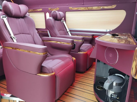 丰田海狮13座/丰田海狮10座/海狮6座7座8座9座专业改装航空座椅,定制埃尔法 (配置|询价)原车座椅,隔断,实木地板,鹿皮顶棚,星光顶,冰箱,车载电视.......采用了复古式的设计风格来致敬初代车型。与车身颜色不同的前保险杠、而A柱至D柱则采用了黑色涂装,以及白色抛边的轮拱,再搭配15英寸黑白双色的复古式轮圈,无一不是在体现出上个世纪的设计元素。