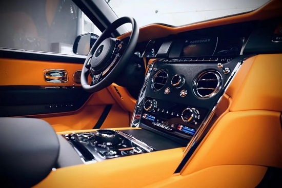 进口劳斯莱斯库里南在内饰方面,劳斯莱斯自然不会让你失望,整体设计风格与幻影相似,虽然缺少了“艺境藏珍”画廊,但库里南带来了大量上乘木料与真皮搭配,同样营造出强烈的奢华感。在方向盘设计上,库里南更具厚重感同时也显得小巧一些,同时劳斯莱斯在库里南上首次使用了触屏中控,在行驶过程中能更方便驾驶者使用。