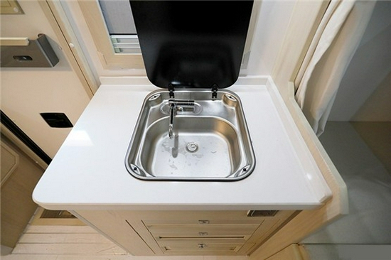 卫生间采用干湿一体式设计,内部配备赛特福德马桶、洗手池、梳妆镜、换气扇、淋浴花洒等;大宇3kg洗衣机免去了手洗的时间,提高了生活效率;水路系统方面,400升净水箱、75升灰水箱。整车上下水系统做了防冻处理,更好的适应极度严寒等恶劣环境。