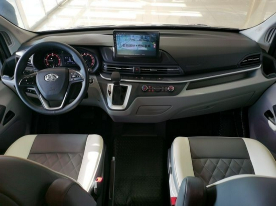 驾驶室内部看去和乘用车一模一样,多功能方向盘,中间带有超大尺寸的液晶显示屏,显示屏可以控制车辆多媒体功能以及显示倒车影像