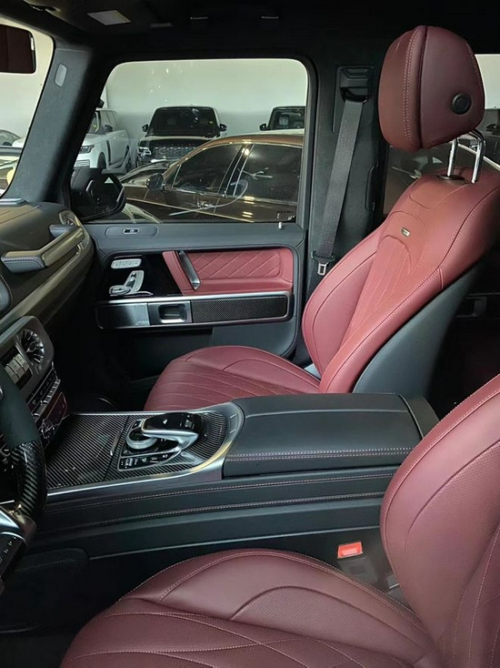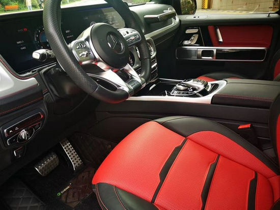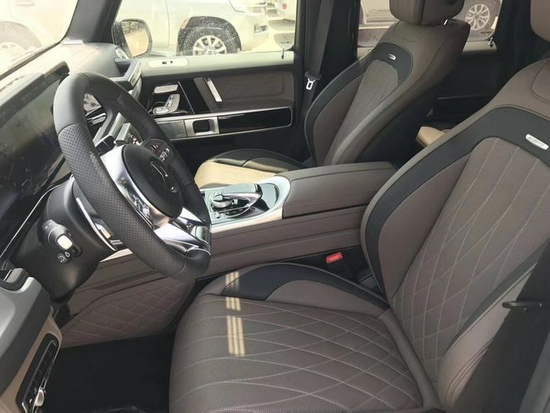 AMG奔驰G63的内饰可以说极具有诱惑力,也是今年改款的重中之重。夜间环境氛围照明系统(64色可调),方向盘采用了AMG平底式,搭配碳纤维设计彰显时尚,中控台采用大量银色金属亮条搭配与中央手扶箱融为一体,虚拟的表盘与中控12.3英寸液晶屏融为一体颇具时尚气息,中控涡扇式空调出风口也颇具设计感,车内的高档皮革内饰以及标有V12钻石图案设计的座椅、车门面板和脚垫,无不彰显着车主的尊贵身份!新款AMG奔