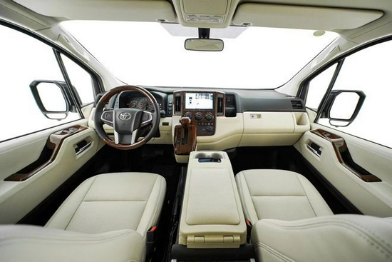 丰田(进口)海狮-HIACE在内饰上木质以及烤漆饰板的加入使得丰田(进口)海狮-HIACE的内饰更具豪华度,车顶的设计时尚、大气,装彩色航空顶灯,星空顶,流水灯充满着舒服的味道,点亮后车内的氛围是其它商务车所不能比拟的,也使丰田(进口)海狮-HIACE在内饰的环境上展现出与众不同的色彩,家庭出游必备首选。