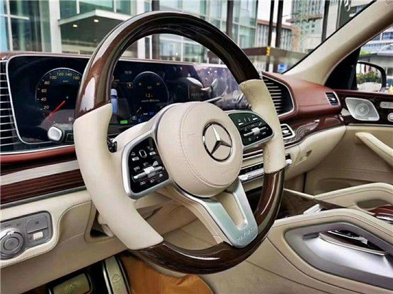 奔驰迈巴赫GLS600方向盘、中控台等处都使用了实木、真皮等材质,触感、观感都无可挑剔。同时,新车还配备了该车型专属的64色氛围灯、名为“NO.8 mood”香氛系统和Burmester品高端3D环绕音响系统