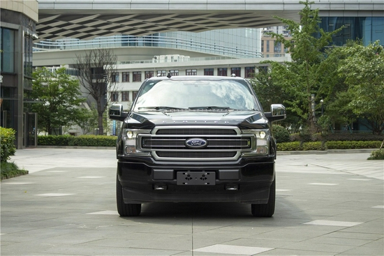 大多数没有接受过美式皮卡洗礼的国人,关于勇猛者有着5895×2040×2004的大块头身躯,站在车头前着实会被吓一跳。哑光银进气格栅中镶嵌着镀铬条和醒目的FORD车标,底下是亮泽的拖车钩,前杠延伸营造出伪宽体效果让整车看起来庞大。