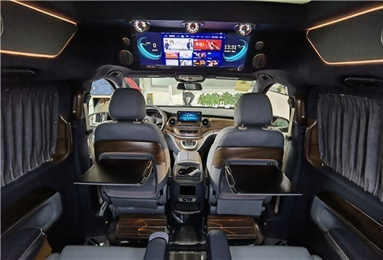 2021款奔驰V260L改装商务车第二排航空座椅为带电动、加热、按摩、通风功能的航空级首长席,可沿着地面上滑轨实现一键电动式前后滑动,对于这种智能化的乘坐体验,是原厂车型笨拙的手动拖拽模式所望尘莫及的。车内的氛围灯打开后,奔驰V260内舱变得灵活多变,气氛也可以根据主灯颜色变换而变化,主要的乘坐座椅配置的独立的按摩功能,通风加热,一体腿托,功能丰富,乘坐舒适,是商务接待用车的代步良品.