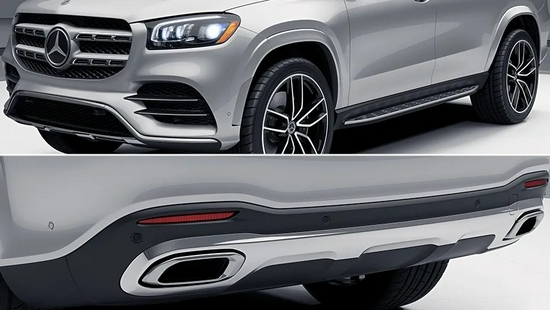 第四个也比较明显,那就是轮毂。中规进口三款奔驰GLS标配了19英寸双5辐轮毂、20英寸5辐轮毂和AMG的21英寸双5辐轮毂三种样式,且不可选装,这三款轮毂里最大也就是21英寸的轮毂了。
