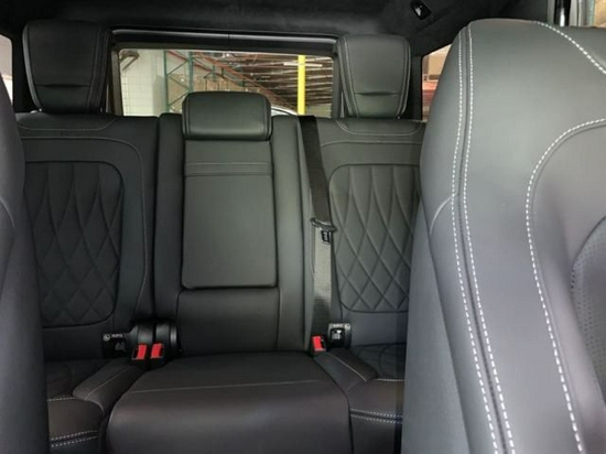 AMG座椅具备良好的包裹性,AMG G63在能碰得到的地方大量使用了真皮面料,红黑搭配显得非常运动。在如此豪车上,麂皮车顶便不是什么稀罕事了,天窗尺寸也相对普通,并未采用全景天窗。前排坐姿较高,结合平直的前挡风玻璃,坐在前排有非常不错的视野。座椅的包裹性非常不错,完全不用担心在剧烈晃动中,身体的移位。与奔驰常规车型一样,座椅调节按键被设置在了车门内侧,得益于方正的车身设计,前排头部拥有非常充裕的空间。