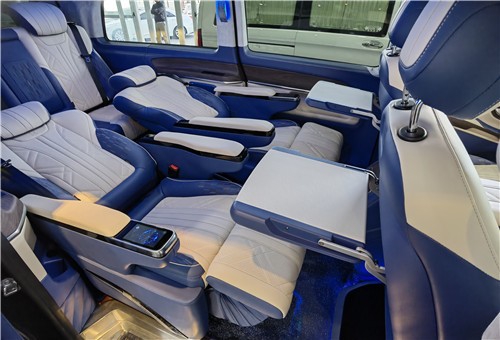 奔驰V260L改装商务车第二排座椅采用舒适豪华的德国进口航空座椅,自带通风按摩加热、电动头枕、电动腿托、前后电动调节,舒适宽大的座椅,可以缓解您一天的疲劳。