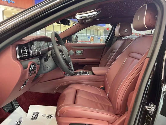 劳斯莱斯古斯特纯手工打造的内饰,处处都体现着精致感,由2000名工人,经过60双手,花费至少20天打造。三辐方向盘尺寸适中,握起来很舒服。控台配有一块石英表,看起来很复古,与劳斯莱斯车型的高贵相互映衬。中控台配备了10.25英寸显示屏,集成了导航、多媒体、蓝牙电话、行驶信息等。通过类似iDrive的旋钮区域控制,也带有手写功能。