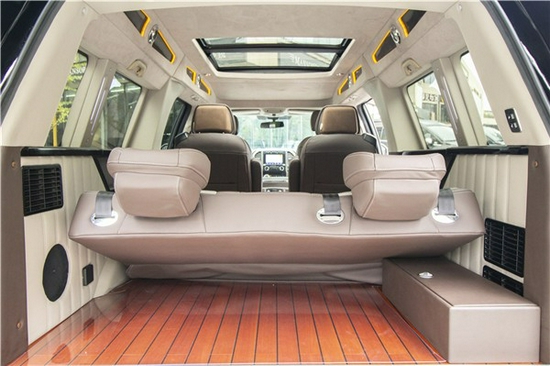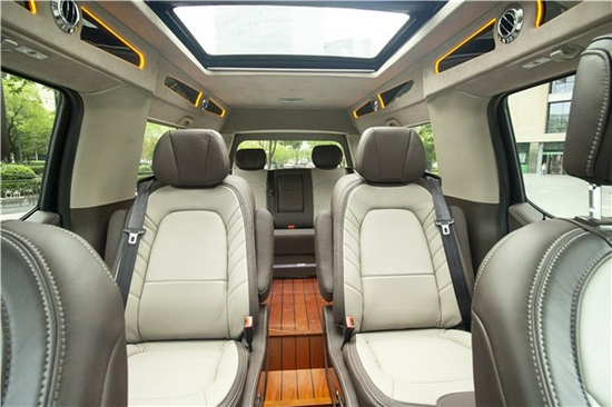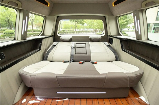 2020款勇猛者LTD全车隔音、隔热、降噪处理,内舱安静私密,适合商务谈判和自驾出行。后尾箱与车体相连,形成一体式车厢,同时加装附带加热、通风、按摩,前后移动等多项调节功能的中排航空电动按摩椅与可180°平放成床的后排三连真皮沙发椅。当开启Bang&Olufsen高保真环绕音响播放一首《摇篮曲》,直击心灵的影院级体验足以让旅途疲累的宾客在弹指间沉沉睡去。