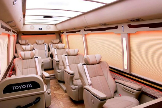 作为商务车经过内饰的改装之后不仅仅能够带给舒适的享受,更可以成为企业现实身份的特征,所以在很多企业接待用车的首选就是丰田考斯特中巴车,因为这是展示实力和对对方尊重的象征,华通丰业在内饰的设计上还增加了窗帘地毯隔断等不同的设计,可以安装沙发床方便我们旅行中更好的休息,可以安装车载冰箱,方便我们在夏季储藏食品和饮料,增加阅读灯的设计在旅行中有更好的阅读时光。
