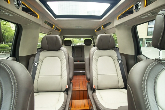 f勇猛者是改造后的,原本只是承载货物的空间变成独立排布带电动加热按摩功用的第二排老板座椅和超大空间带顶灯独立空调出风口的第三排沙发。难得的是第三排座椅还能前后移动放倒!当不需求乘坐7人的时分,放下第三排即刻恢复皮卡本身超大载货的空间优势。后排由于非承载式车身的关系会比前一二排略高,但得益于勇猛者的后车窗和全景天窗,并不显得局促,反而让乘坐于第三排的乘客会有种居高临下的觉得。