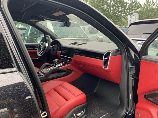 21款加版保时捷卡宴3.0T 黑红 5619# 配置 大豪华包 21寸RS 轮 环影 电吸门 黑色高光车窗装饰前风挡加热,大豪华包PLUS(全景天窗,Bose音响,舒适进入,变道辅助,14向座椅带记忆包,氛围灯,自动防炫目内外后视镜,电子转向PLUS,矩阵式LED大灯带保时捷动态照明系统,四区空调,前座通风,后座加热)生产日期:21年3月