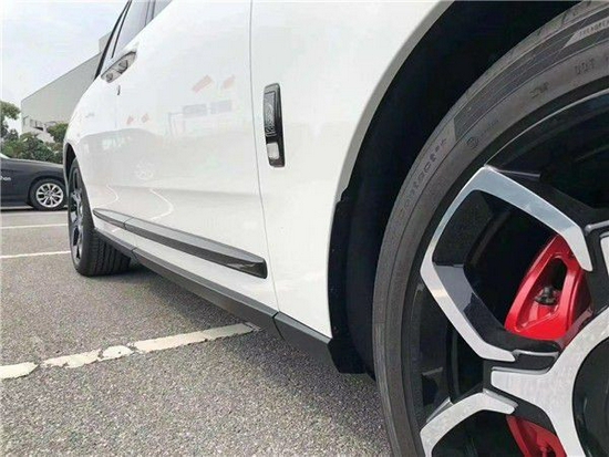 20款劳斯莱斯库里南标志性的对开式车门设计,两扇车门均可开启乎90度,以便车内成员方便上下车,配合大尺寸的天窗,让车内乘客感觉更加舒适。从侧面车头处看,库里南与家族旗舰幻影如出一辙,作为车主来说,这是一件值得去炫耀的事情。开门时车身会自动下降40mm,方便乘客上下车,启动后车身则会自动升高。