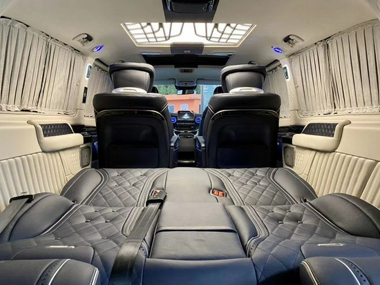 得益于奔驰V260L商务车内部宽敞的空间,奔驰V260L改装后排的座椅被设计成可以电动放平成一张双人床。这样的实用性设计确实增色不少,也使得奔驰V260L同样适用于家用,毕竟,能在旅途劳累的时候有张柔软舒适的床稍事休息,对于每个人来说都是件很幸福的事情。