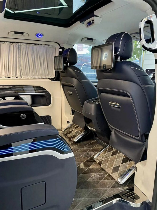 奔驰V260L改装平顶隔断7座商务车第二排座椅安装进口首席航空座椅,加热通风按摩功能齐全,最大限度的减缓您的乘车疲惫。奔驰V260L改装无高顶无隔断7座商务车八向电动调节:电动头枕,电动腿托,前后电动调节,电动靠背调节。