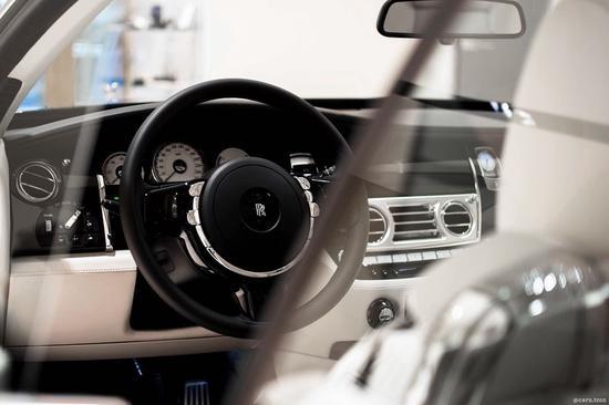劳斯莱斯魅影为了体现它运动化定位,飞翔女神向前倾斜了5度,来强化车头的俯冲感。车灯采用远近光一体式氙气大灯,照明效果自然响当当,转向灯被独立地放置在了下方,并且采用LED光源,提示效果清晰。劳斯莱斯魅影整个内饰与古斯特 (配置|询价)完全相同,设计十分古朴,顶级材料与精致手工搭配出了顶级豪华车才有的氛围,凡是能触及的地方均有皮质或实木覆盖,三辐皮质包裹方向盘的盘辐较大,给人一种沉稳扎实的感觉,方向盘可4向电动调节,调节更加精准,但不建议您在驾驶时操作,行车电脑信息通过左侧拨杆切换,操作较为简单。