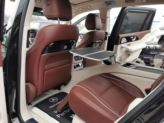 内饰方面,梅赛德斯-迈巴赫全新GLS (配置|询价) 600同样采用双色设计,配备了全新造型的三辐式多功能方向盘,并搭载悬浮式液晶数字仪表以及多媒体中控屏幕。新车内饰还采用了Nappa皮革包裹,后排配有两个独立可调座椅,同时标配了座椅通风加热、按摩等功能,另外,还为后排乘客提供小桌板和多媒体娱乐系统,与普通版GLS车型相比,整体豪华感大幅提升