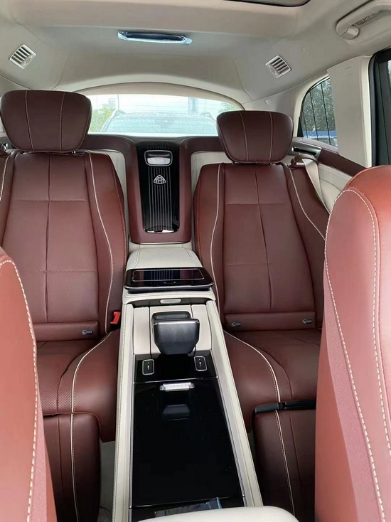 原装迈巴赫GLS600方向盘、中控台等处都使用了实木、真皮等材质,触感、观感都无可挑剔。同时,新车还配备了该车型专属的64色氛围灯、名为“NO.8 mood”香氛系统和Burmester品牌高端3D环绕音响系统。