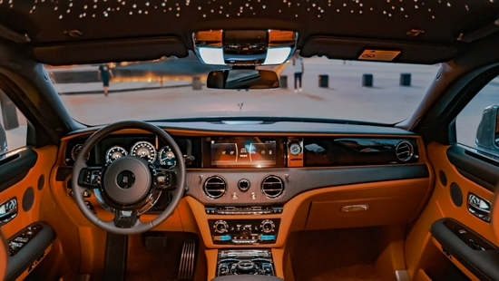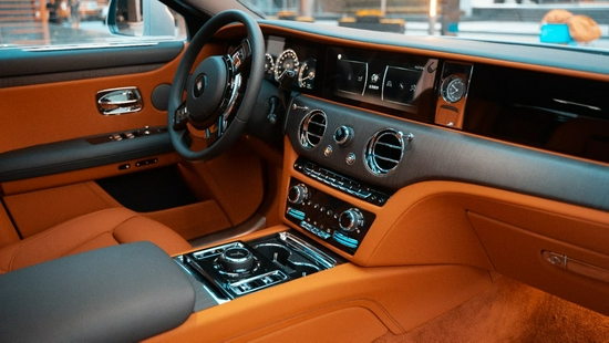劳斯莱斯古斯特纯手工打造的内饰,处处都体现着精致感,由2000名工人,经过60双手,花费至少20天打造。三辐方向盘尺寸适中,握起来很舒服。控台配有一块石英表,看起来很复古,与劳斯莱斯车型的高贵相互映衬。中控台配备了10.25英寸显示屏,集成了导航、多媒体、蓝牙电话、行驶信息等。通过类似iDrive的旋钮区域控制,也带有手写功能。