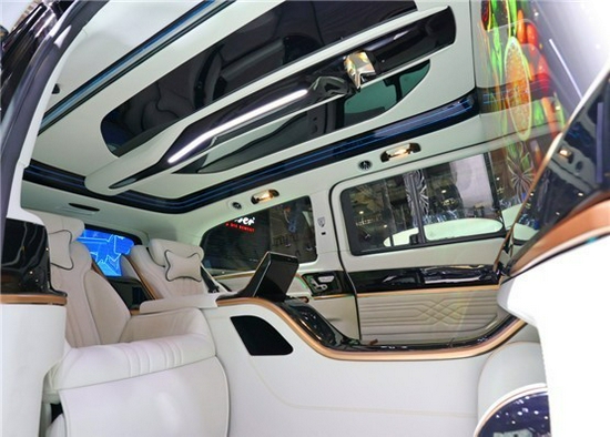 奔驰湾流VS600MX 湾流整个后舱私密性超足,整车超级隔音处理,Lorinser定制抗疲劳降噪地毯,驾驶仓与乘坐仓用豪华隔断隔开实现了汽车后舱的终极形态,真正成为“时代级产品”。