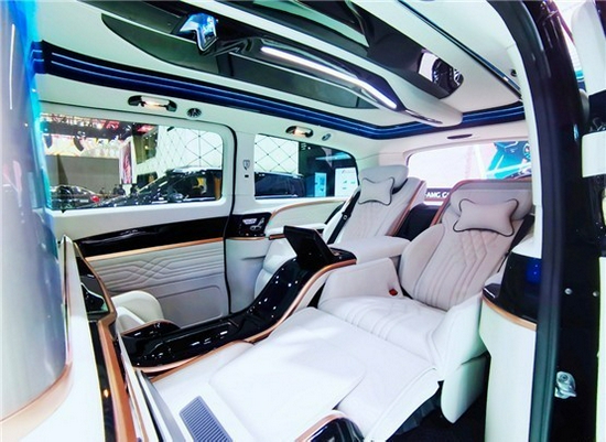 后舱两个奔驰湾流VS600MX定制的首长座椅集按摩通风加热齐全中间为奔驰湾流VS600MX定制豪华一体式S级 (配置|询价)中扶手箱 ,首长座椅超长伸展+奔驰湾流VS600MX智能升级隐藏式脚踏不要太舒适。