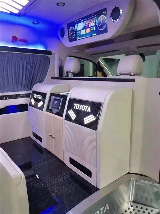 丰田海狮是一款创造舒适的商旅享受的商务客车,宽畅滑动侧门,与领先商务相谐,乘客出入更自如快捷,富绰空间,长途旅行不再局促而劳累。车内空间利用非常充分,配有上下两张双人床铺,通过搭建驾驶室上方的床板可以形成一张床铺,通过折叠沙发座椅,铺上软垫又形成另外一张双人床铺,驻车时车内可供四人同时休息。丰田海狮大多数是作为接待用车,因此海狮受到很多企业的青睐。既然是企业接待专用车,内饰方面是不能过于简陋,接待车的内饰是展现了企业的体面。