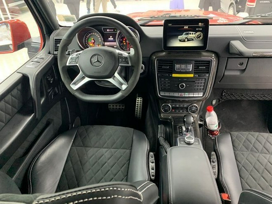奔驰G500经过全新改款内饰豪华气派,卓越的品质和精致的工艺在车内体现得淋漓尽致,对细节的精益求精是内饰设计中的重要原则。车内采用深色调与桃木装饰,黑色真皮运动座椅非常舒适,方向盘以高档真皮包裹装饰,触感极其细腻。