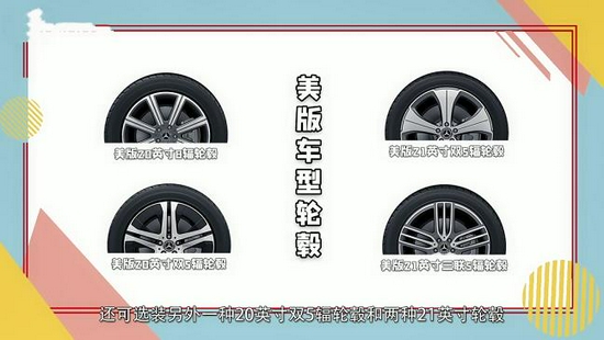 加版就更多了,21款标配就是21英寸5辐三联轮毂(美版需要选装,中规不可选),还能通过选装运动包获得跟中规进口顶配豪华型一样的AMG21英寸双5辐轮毂,而且还能在这个基础上选装22英寸AMG多条辐轮毂和23英寸AMG双5辐轮毂这两种中规和美版都没有的轮毂。