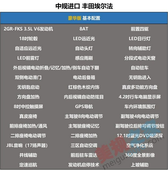 那么接来下,抛开动力差异,咱们看看丰田埃尔法各版本间都有哪些配置差异。