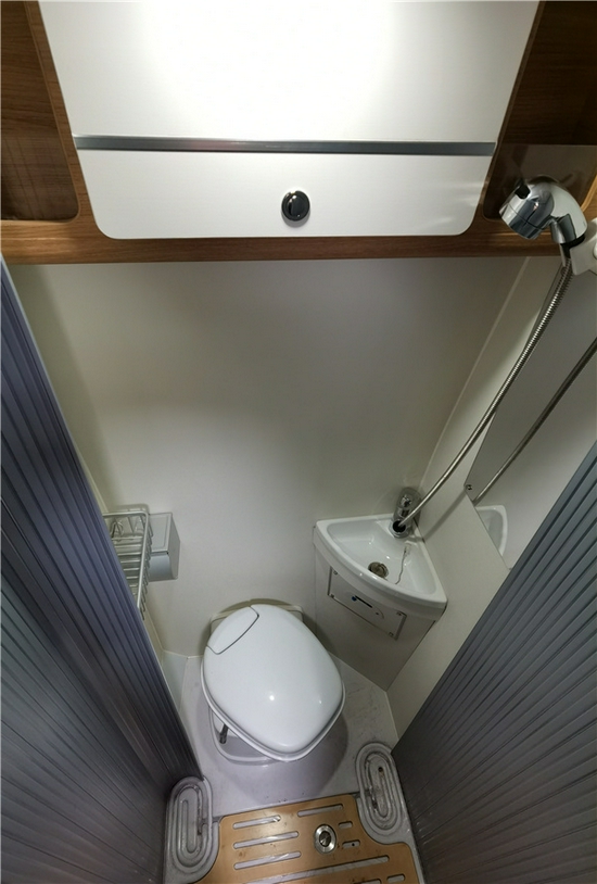 主门位于车身右侧,推拉式车门配有纱帘,较宽的车门设计使日常上下车更加的方便,而纱帘可以有效减少夏季蚊虫的侵扰;此外,主门上方设有LED照明灯方便夜晚驻车时照明使用;