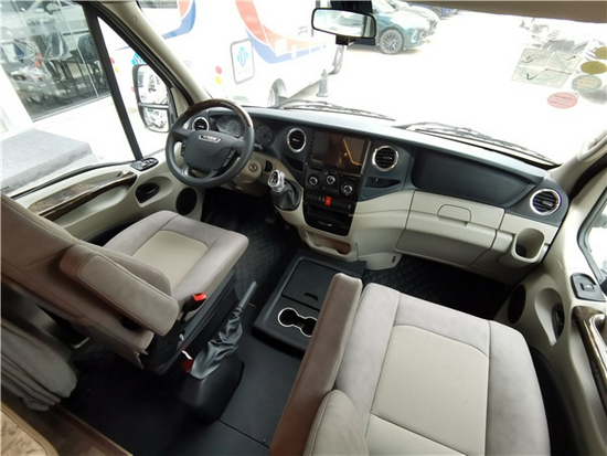 采用了依维柯欧胜 (配置|询价)底盘,外形尺寸为5980×2450×3330(mm),动力方面,欧胜搭载3.0T柴油涡轮增压发动机,匹配8速自动变速箱,最高功率125kW,国六排放。新车方向盘和扶手选用水转印效果,换装了豪华正副驾驶座椅,副驾驶座椅可旋转。倒车雷达影像,双电源管理系统等均为标配。