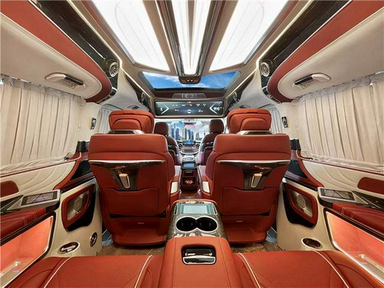 商务车的核心就是舒适,那么座椅就显得尤为重要。车内座椅都采用了皮质激光打孔工艺打出的小孔,使得座椅能够更好地通风透气,还能有效地防止了螨虫等细菌的滋生,小范儿对座椅进行清洁养护也十分方便。后排为两个独立航空座椅,他们不仅座面宽大舒适而且内部填充高密度海绵久坐不变形,座椅能够向后进行旋转方便与后排乘员互动交流,而且具有完美的衬托感!具有通风、加热、气动按摩等功能以及腿托,通过座椅侧面对开关进行控制调节,可以保证极致舒适的乘坐体验,全方位疏解旅途劳顿。
