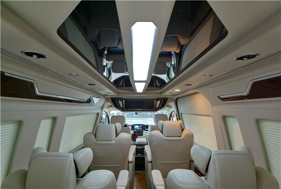 原装进口的埃尔法豪华座椅,并且再配备电动加热通风以及电动脚托的装置,丰田海狮改装商车在内饰座椅上的选择上充分体现了对于乘车人员舒适度的考虑。
