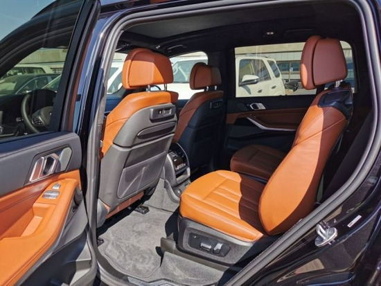 2021款宝马X7的第二排还可选装两个独立座椅以2+2+2的座椅布局呈现。全车座椅采用了真皮包裹质感表现十分突出,并且标配了座椅加热。2021款宝马X7在将第二排的腿部空间调整至两拳后,第三排可以获得一拳的腿部空间,虽然头部空间比较有限,不能与M P V车型相提并论,但2021款宝马X 7的第三排也并不像一般SUV车型那样会有一种压抑感,视野很好,不会被前排的座椅有所遮挡,客观地说,2021款宝马X7的第三排是够用的。并且车内第五区的空调就是为第三排乘客服务的,座椅两侧还各有一个Type-C接口,顶部还设有一扇不能开启的天窗,但能够给后排带来良好的采光,绝对不会感到压抑。