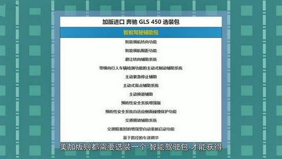 最后再说一下倒车辅助的差别吧。中规奔驰GLS全系标配360度全景影像;美版GLS 450从21款开始,也标配了这个功能;加版需要选装豪华包才能获得,不过一般引进国内的加版车至少都会选装一个豪华包,所以在倒车辅助上,基本也没有太大差别。