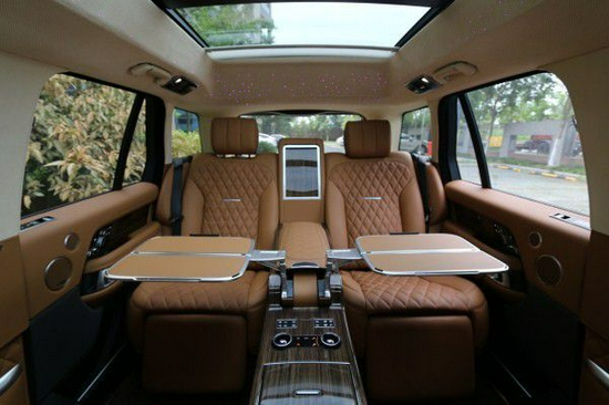 真土豪座驾路虎皇家一号,豪华程度不输宾利劳斯,基本车长5998毫米2073毫米1840mm(长宽高)的车身尺寸似乎并没有影响到整体视觉的和谐度。T是一款定位在高端豪华领域的车型,轴距尺寸使人心旷神怡,超长的车身别开生面的研发手艺和豪华的内饰使得路虎皇家一号稳坐超豪华SUV房车的一把交椅,而这款车型在豪华的根本上更为注重后排的驾乘感和触感。
